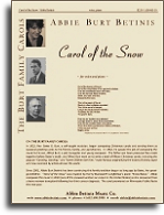 Carol of the Snow By Abbie Burt Betinis. Solo voice and piano. Fondazione Adkins Chiti: Donne in Jazz 2012 award Premiered on Minnesota Public Radio. (listen / watch video) (Voice & Piano, Secular) 4 pages. Publisher: Abbie Betinis Music Co. (AB-063-C10) |